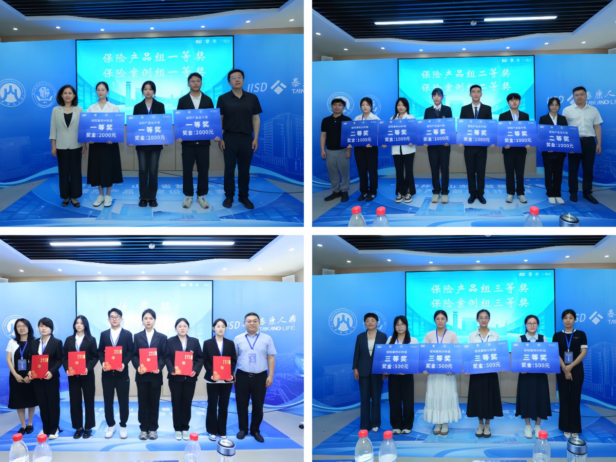 决赛现场精彩纷呈。各参赛团队通过详实的保险产品计划书和精心准备的PPT演示,全方位展示创意成果。答辩环节团队间思维碰撞,专家指导为项目增益添彩。经过评审,大赛最终决出保险产品设计组一等奖2名、二等奖4名、三等奖6名,保险案例分析组一等奖1名、二等奖2名、三等奖4名。