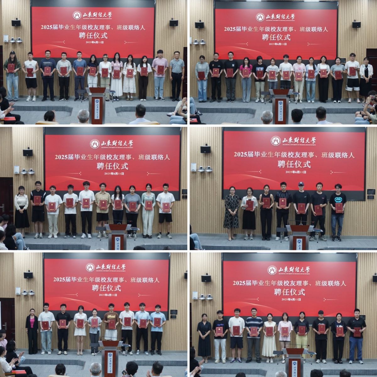 6月11日下午,山东财经大学2025届毕业生年级校友理事、班级联络人聘任仪式在燕山校区隆重举行。副校长张新出席仪式并讲话,年级校友理事、班级联络人代表近160人参加活动。