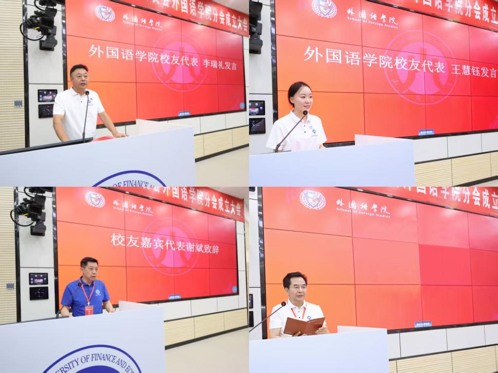 1992级经贸英语专业校友李瑞礼、2021级英语专业校友王慧钰分别发言,分享了在校期间的点滴回忆,并送上对校友会成立的美好祝福,表示将为学院和校友工作贡献力量;1991级会计专业校友李宗芳以现场赋诗的形式,庆贺学院校友分会成立。
