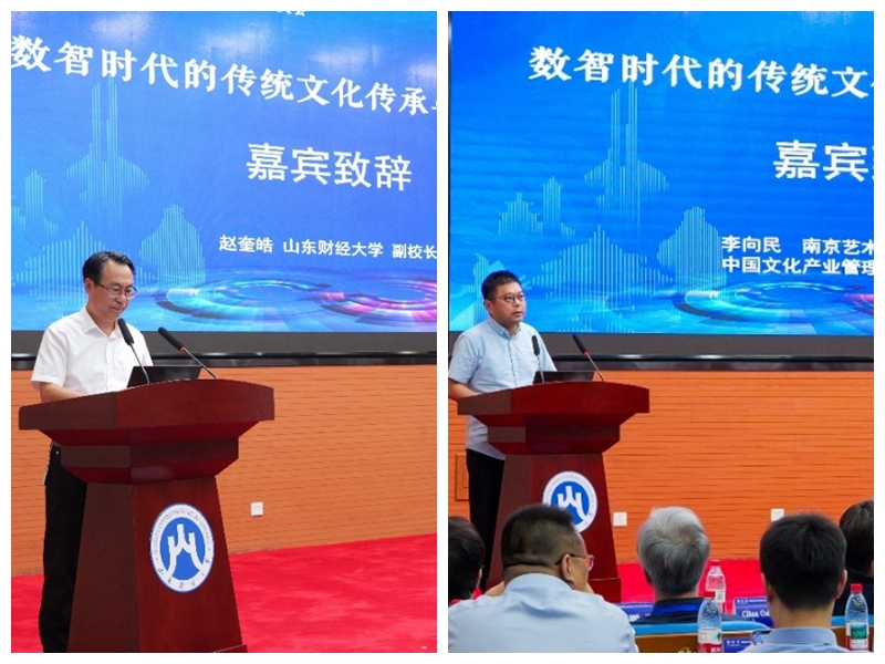 开幕式上,山东财经大学副校长赵奎皓、南京艺术学院党委副书记兼中国文化产业管理专业委员会会长李向民先后致辞。赵奎皓介绍了学校厚重的红色基因、悠久的历史底蕴以及近年来取得的新成果,希望与会专家为推动传统文化在数智时代传承发展贡献智慧力量,共同促进文化产业管理学科发展。李向民代表专委会对会议召开表示祝贺,希望与会嘉宾深入研究人文经济学等前沿领域,围绕优秀传统文化传承与创新畅所欲言、建言献策。