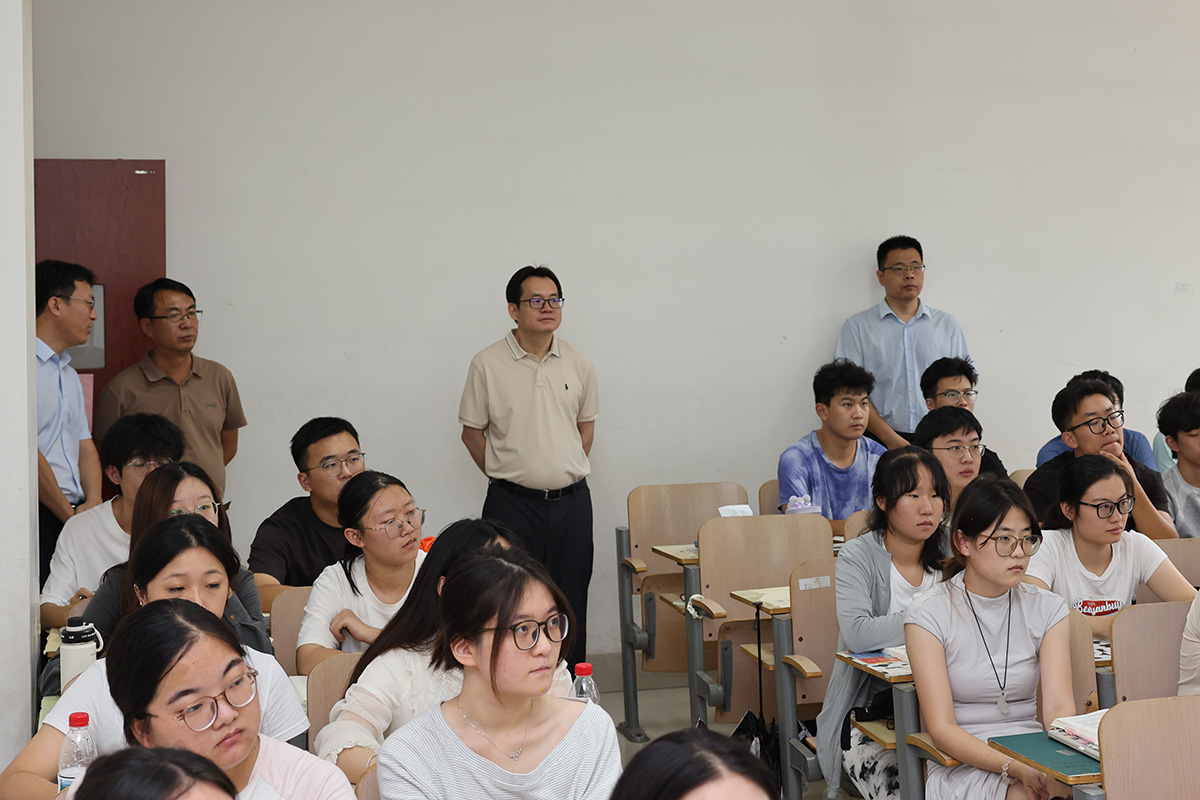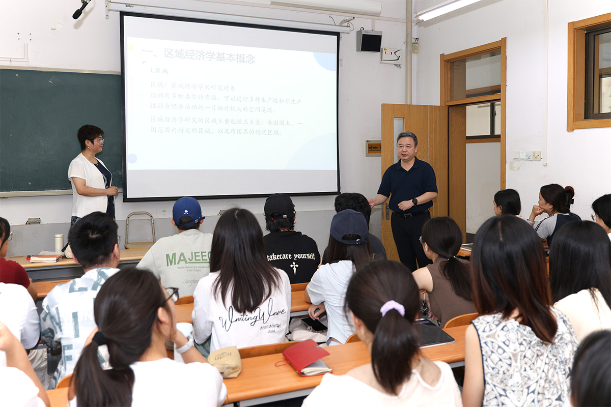 随后,查玉喜到教学楼查看上课情况,走进教室听了经济学院庞晶教授的《区域经济学概论》课,并与同学们进行交流。他表示,新学期新气象,同学们要进一步明确学习目标,将课堂知识与经济社会发展相结合,深入思考、勇于实践,充分利用好当前的学习机会,努力进取,为今后的深造和就业打好基础。同时,他提醒同学们尽快熟悉新校区环境,注意宿舍安全和卫生,并祝大家学习愉快,前程锦绣。
