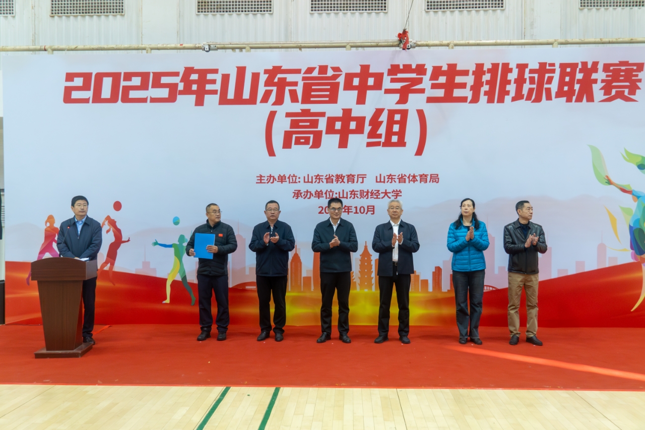 10月24日上午,由山东省教育厅、山东省体育局主办,我校承办的2025年山东省中学生排球联赛(高中组)在舜耕校区体育馆开幕。我校副校长张新、山东省教育厅体育卫生与艺术教育处处长王桂龙出席开幕式。