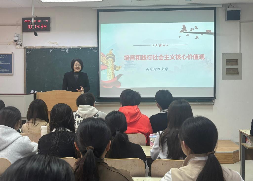 10月30日上午,副校长张红霞在燕山校区以《培育和践行社会主义核心价值观》为题,为会计学院2023级智能会计班全体学生讲授思政课。
