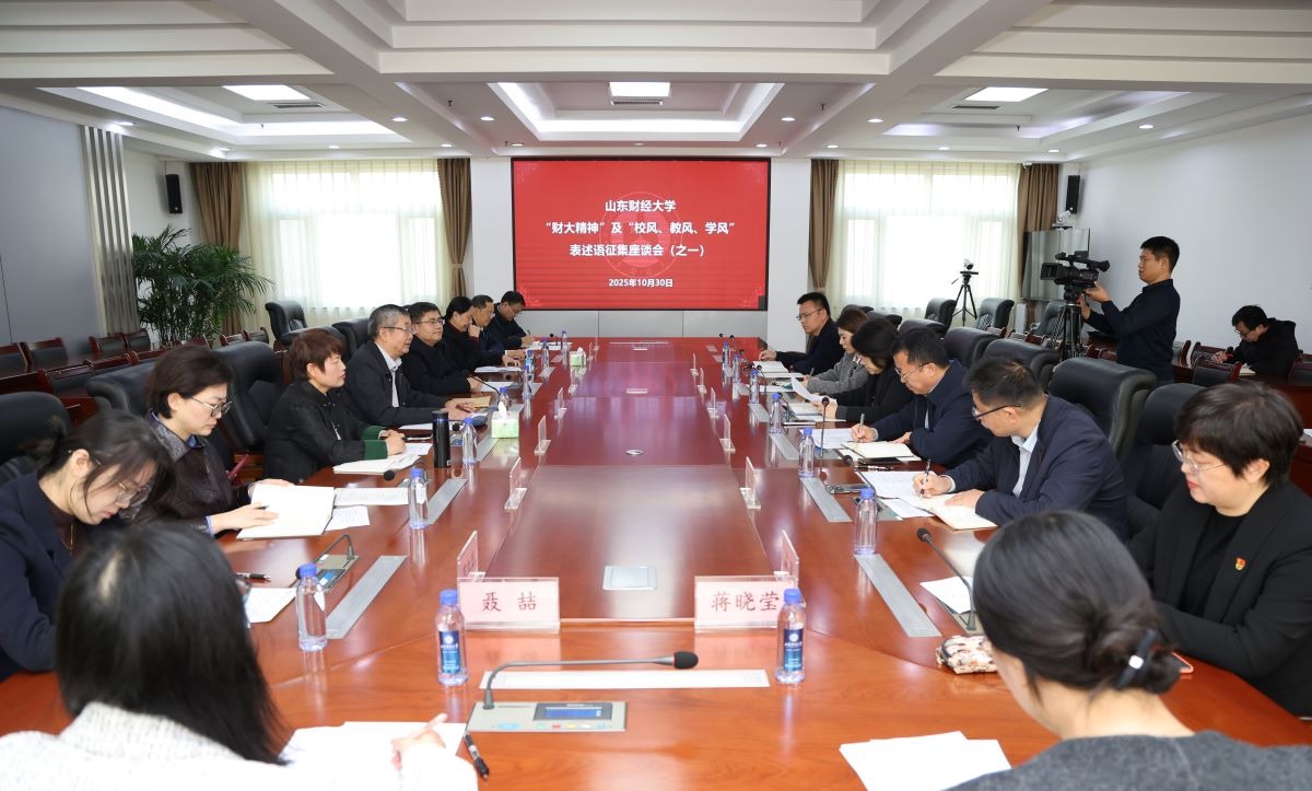 秋意正浓,秋色如画。10月30日下午,燕山校区办公楼七楼会议室,围绕“财大精神”以及“校风、教风、学风”(以下简称“三风一精神”)表述语征集的首场专题座谈会正在举行。