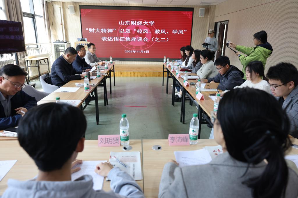 与首场“教风”座谈会不同,除相关职能部门的老师外,来自不同学院、不同年级的学生是主角,他们之中有校学生会、研究生会骨干,有班级、社团干部,有全国大学生自强之星,有全国“青马工程”班学员……但他们都有一个共同身份,那就是山财大学子,是财大学风建设的共建者、共享者、传承者。