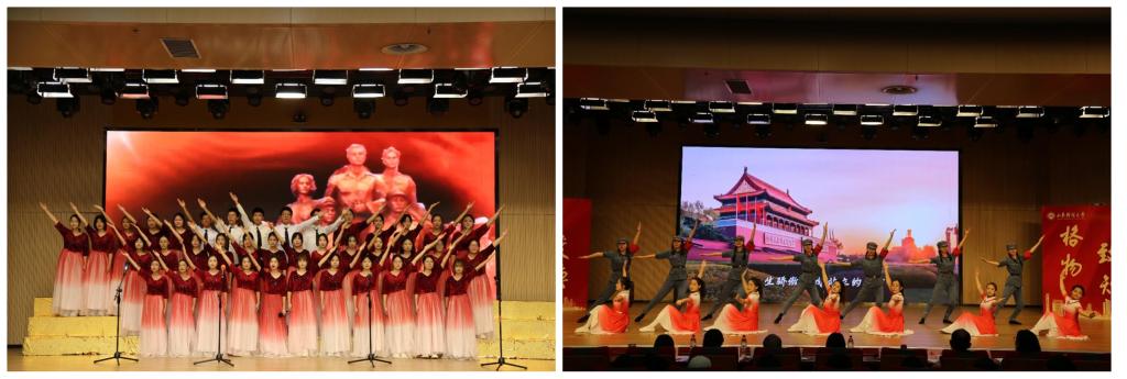 现场氛围庄重含温情,歌曲《保卫黄河》《英雄赞歌》《我们走在大路上》《不忘初心》,以激昂的旋律承载家国情怀与民族气节,传递出不畏艰难、砥砺前行的奋进力量;歌曲舞蹈《有我》既传递出青年一代对祖国的赤诚热爱,也彰显了“强国有我”的坚定信念。