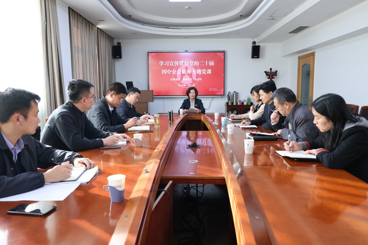 12月1日下午,纪委书记、监察专员王玉花为纪委、监察专员办公室党支部讲授深入贯彻落实党的二十届四中全会精神专题党课。