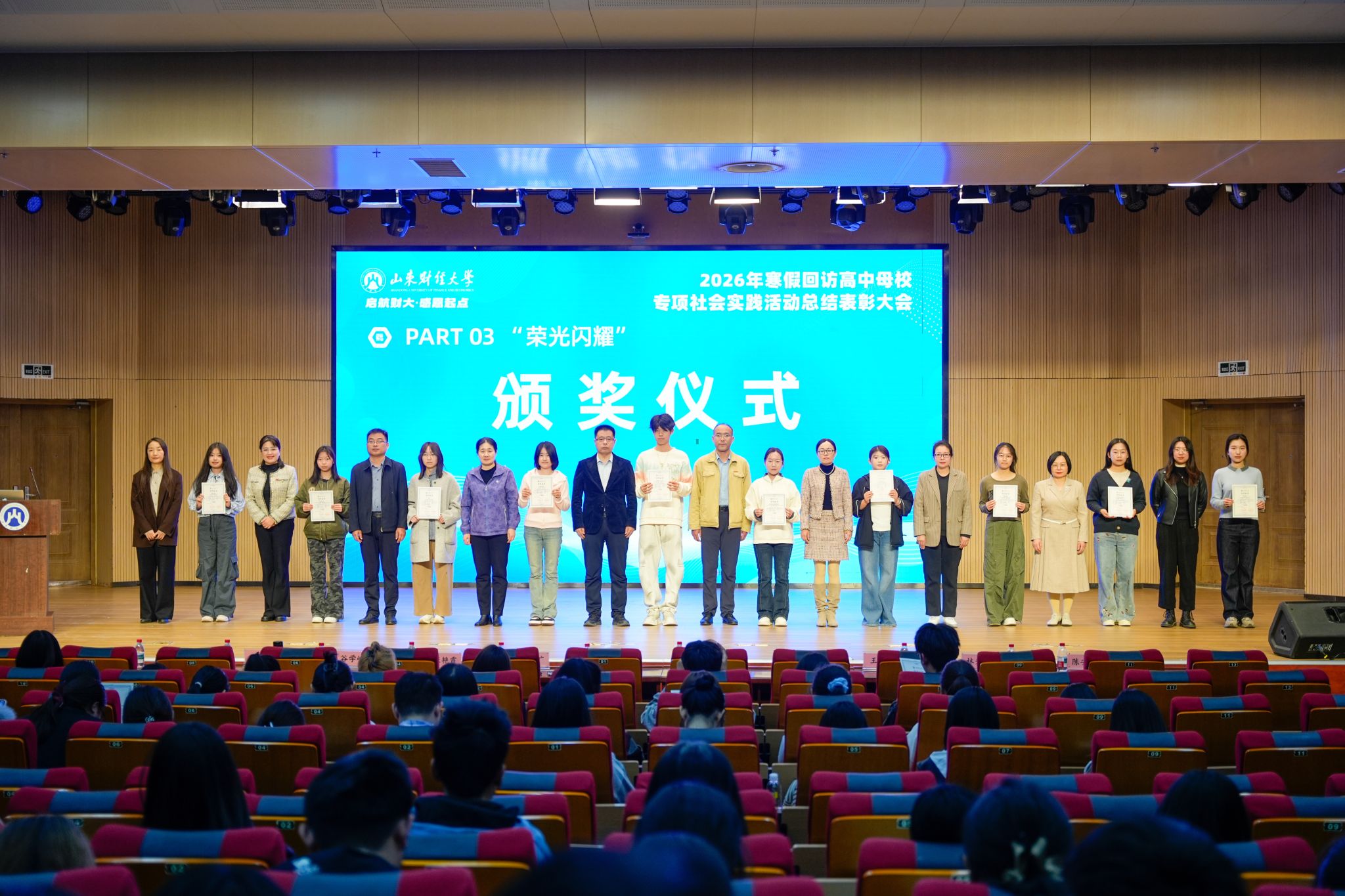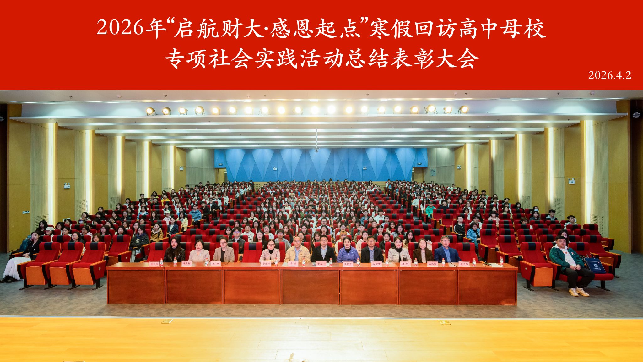 4月2日晚,学校2026年“启航财大·感恩起点”寒假回访高中母校专项社会实践活动总结表彰大会在章丘校区大学生文化活动中心报告厅召开。