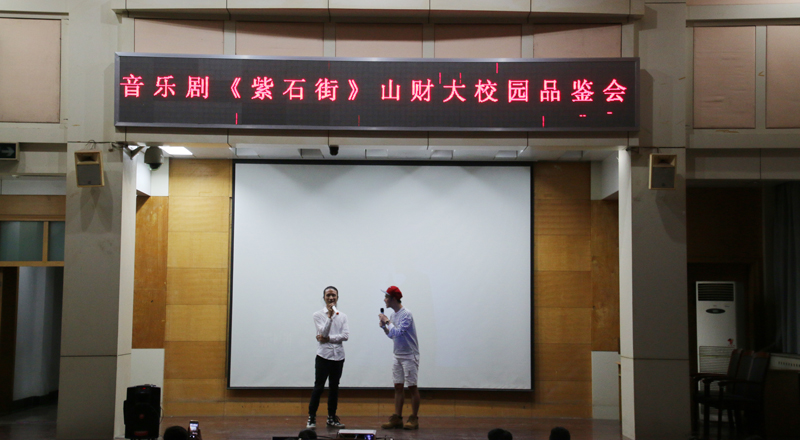 9月19日晚,学校在三号报告厅成功举办了中国原创经典音乐剧《紫石街》校园品鉴会(山东财经大学站),品鉴会由艺术学院、计算机科学与技术学院以及李洪星工作室联合举办,《紫石街》剧组人员担任主持,200多名师生参加了品鉴会。
