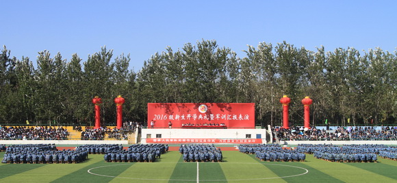 9月29日上午,秋风送爽,金桂飘香,在巍峨的泰山脚下,山东财经大学东方学院2016级新生开学典礼暨军训汇报表演在运动场隆重举行,2016级新生庄严宣誓。承训部队副参谋长,东方学院党委书记宫淑瑰,院属各部门、各系部负责同志,承训部队教官、各系部辅导员及2016级全体新生参加大会。大会由东方学院学团工作处处长王伟主持。