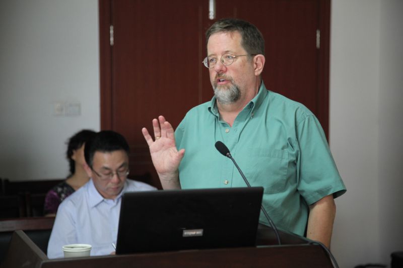 Salmons首先以英国历史上著名的元音大迁移为切入点,提出研究问题:为什么相似的链变在不同语言中反复出现并持续几个世纪?这些链变又是如何发展的?为了解答这些问题,Salmons教授对元音链变发展进程进行了实证研究,继而对美国南北地区方言中元音链变特征进行了比较研究。在此基础上,他总结出造成元音链变的主要原因,如不完善的语言习得、结构性动因、语言接触和方言接触等;他同时强调了年龄、性别等社会因素在元音链变中的作用:儿童和年轻女性是促成元音链变发展的主要群体。报告结束后,Salmons教授回答了在场师生的提问,与他们进行了良好的互动交流。Salmons教授的报告见解新颖独到,讲述深入浅出,使学院师生受益匪浅。报告对进一步提升外国语学院的科研水平,推动外国语言学及应用语言学省级重点学科的建设,将发挥积极的促进作用。