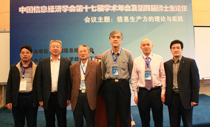 中国信息经济学会名誉理事长、著名经济学家乌家培教授,中国信息经济学会名誉理事长、中国人民大学信息学院陈禹教授,中国信息经济学会理事长、信息产业部电信研究院总工程师杨培芳教授,教育部管理科学与工程类学科教学指导委员会副主任、中国信息经济学会副理事长、清华大学经济管理学院常务副院长陈国青教授等知名学者,以及来自政府部门、中国智库和企业的代表150余人参加了学术年会。
