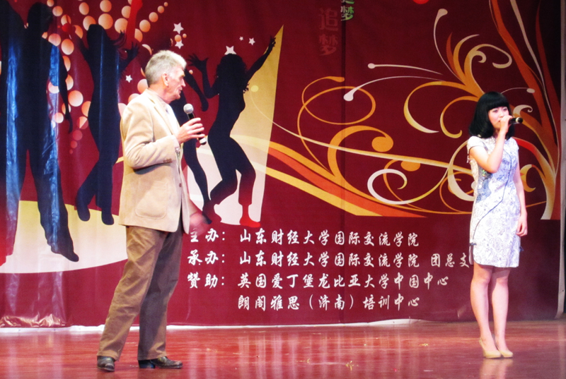 11月16日晚,国际交流学院在舜耕礼堂举行2012级迎新晚会。学生工作处处长王剑、团委书记邓迎迎、学生工作处副处长邱博、加拿大达尔豪斯大学经济系主任和中加项目负责人Barry Lesser教授、Paul Hobson教授、Martin教授和Keith等外教老师,我校部分留学生以及国际交流学院全体领导和老师出席晚会。