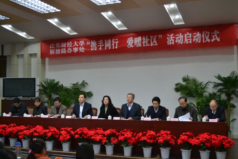 12月15日上午,济南市历下区解放路街道办事处与管理科学与工程学院进行了“携手同行 爱暖社区”社会实践活动启动仪式,历下区民政局书记封秀焕,解放路街道办事处书记李乐军、主任祝伟东,管理科学与工程学院院长张新、党总支书记高康林、党总支副书记杨德嵋、校团委副书记张超等出席了启动仪式,学生代表,低保户边缘户家庭成员代表参加了此次活动。