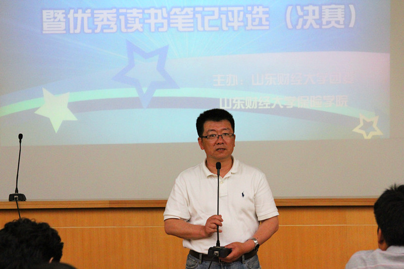 5月15日下午,校团委和保险学院联合举办的“读书点亮青春”优秀读书笔记评选决赛在舜耕校区举行。国际经贸学院党总支书记王松,财政税务学院党总支副书记文卉,党委学生工作处副处长魏莉莉,团委副书记张超担任本次比赛的评委。保险学院党总支副书记张娟、全体辅导员老师以及各学院参赛代表、学生代表和各选手的亲友团同学参加活动。