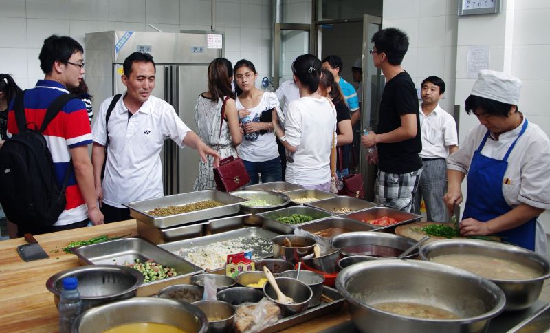 饮食服务中心综合办公室主任、第一党支部书记刘宝璋认为这一活动有利于营造“食堂工作关系你我他、进步靠大家”的良好氛围,能够听取师生对食堂工作的意见和建议,促进学生食堂工作的进步。随后大家一起参观考察了学生二食堂。舜耕校区食堂管理科科长张克雷向同学们介绍了食堂的管理和运营情况。学生党员零距离观察到了食堂的管理,了解了食堂的基本操作流程,知道了自己吃的馒头、喝的稀饭、用的餐具,是经过哪些工序走到餐桌的,感觉到自己吃的放心、安心;学生们体会到了食堂管理的复杂与细致,食堂员工的工作性质与强度,也见识了很多先进的炊事机械设备。