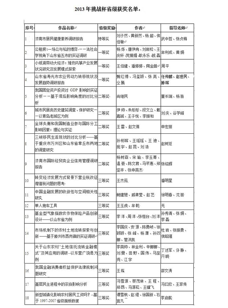 近日,由团省委、省科协、省教育厅、省科技厅、省学联主办,山东大学承办,青岛银行协办的第十三届“挑战杯”山东省大学生课外学术科技作品竞赛获奖结果揭晓,我校师生获得全面丰收。