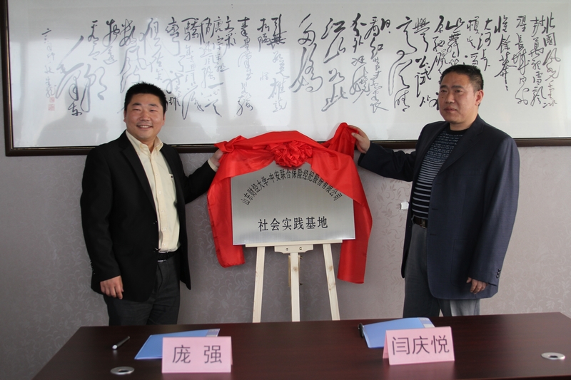 保险学院院长闫庆悦对泰山保险公司、中安联合保险经纪公司及学校校友办对保险学院社会实践工作的支持表示感谢,对基地的成立表示祝贺;并就保险学院师资队伍、学生规模、专业方向等基本情况作了介绍。他表示服务社会是大学的一项重要使命,保险学院愿意承担起这份责任,积极为保险企业提供人才培训、课题研究、项目咨询等方面的服务。
