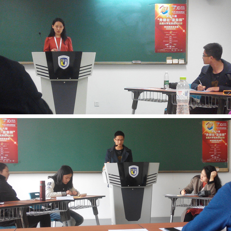 我校团队由公共外语教学部景翠、外国语学院李慧2名指导教师带队,国际教育学院2012级会计学专业本科生施俊超、会计学院2012级国际会计实验班本科生李婧仪参赛。我校团队参加五轮循环赛,围绕人文科技教育主题展开英语辩论,选手以较强的思辨能力、风趣的辩论语音、严谨的辩词论据、激烈的思想交锋还有强有力的身体语言表达给在场观众留下深刻印象。