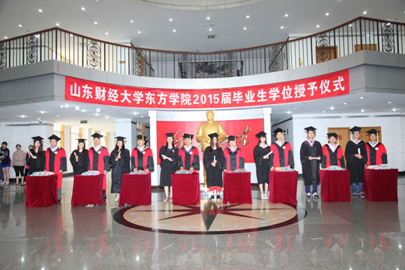 学院教务处处长助理张英泽宣读了毕业生资格审查报告及授予学位的决定。东方学院2015届应毕业本科学生共有14个专业、38个教学班,共有毕业生1480人;专科学生共2个专业、7个教学班,共有毕业生315人。