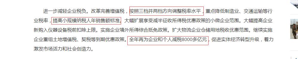 李克强总理在政府工作报告中提出,今年要实现为企业个人减税8000亿。而这次出台的三条政策,将在增值税领域减税4000亿元。作为我国最重要的税种,增值税在减税方面自然也是发挥了巨大作用。