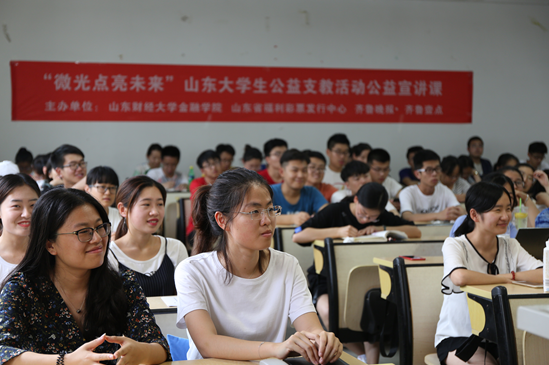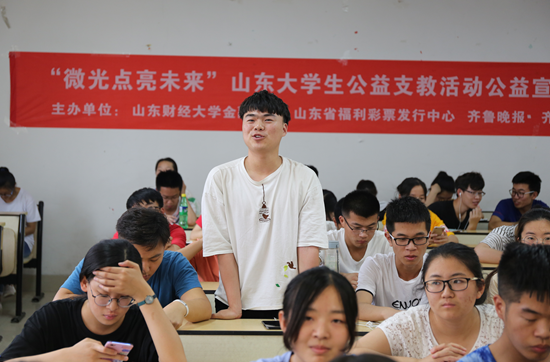 为了激发学生学习动力,教导学生健康生活,培养学生兴趣特长,6月7日在山东财经大学圣井校区闻道楼举办了“微光照亮未来”公益支教活动公益宣讲课。