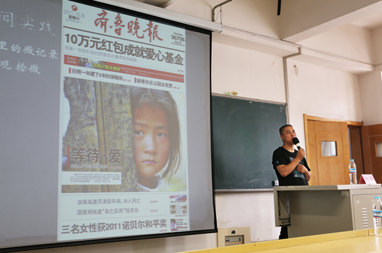 本次活动由山东财经大学金融学院、山东省福利彩票发行中心、齐鲁晚报.齐鲁壹点主办。活动特邀十九大代表、全国优秀新闻工作者、齐鲁晚报记者、齐鲁晚报壹点智慧社区负责人张刚老师,与大家分享公益经验,讲述自己的公益历程。