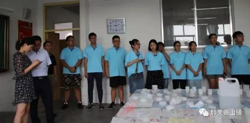8月8日上午,山东财经大学就业指导处处长杨哲、团委副书记张超、管理科学与工程学院党委书记李军等一行在沂水县委副书记李宾、团县委书记王军军、黄山铺镇党委书记师立功等领导陪同下,共同参观了东河北的阿狸工作室及小庄子村的项目加工车间。