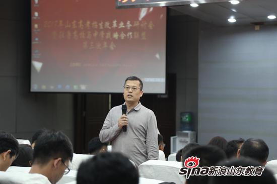 济南大学城实验高级中学副校长张兴卫从学校推行的普高联合育人课程的实践中,了解到促进中学生职业生涯规划的有效方法,并表达了与各高校加强沟通、合作的意愿。青岛科技大学教务处副处长、招生办主任张树海从加强专业类建设,推动学校专业认证的角度,提出了高校在应对新高考改革中的应对举措。淄博职业学院招生办公室主任刘会华建议,为助力高职发展,可以扩大合作层次,深入中职院校,为高职院校储备春季高考资源。
