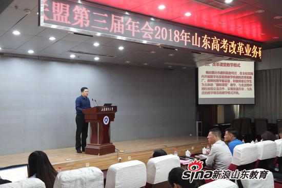 山东财经大学副校长韩作生在讲话中说到:“2020年山东省将实行按专业报考的新高考模式,这对普通高校的招生工作来说是重大考验。高校压力进一步加大,高校改革的紧迫性不断增强。借助驻鲁高校与中学战略合作联盟的平台,大学和高中的同仁们可以相互交流,积极寻找和完善高校与高中学校的合作模式,为学生发展创造更科学、有效的便利条件”。