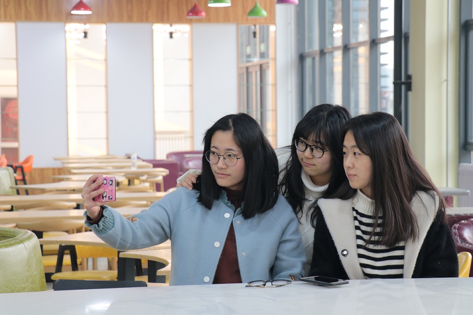 山财学生在食堂拍照打卡
