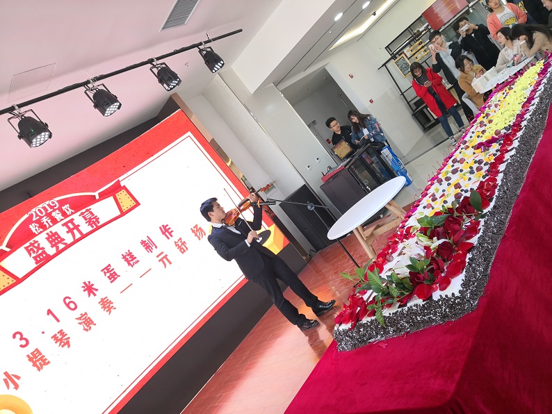 3月16日,餐厅为了迎接明水校区学生,特制三米一六长蛋糕,三楼小舞台还有学生音乐表演。
