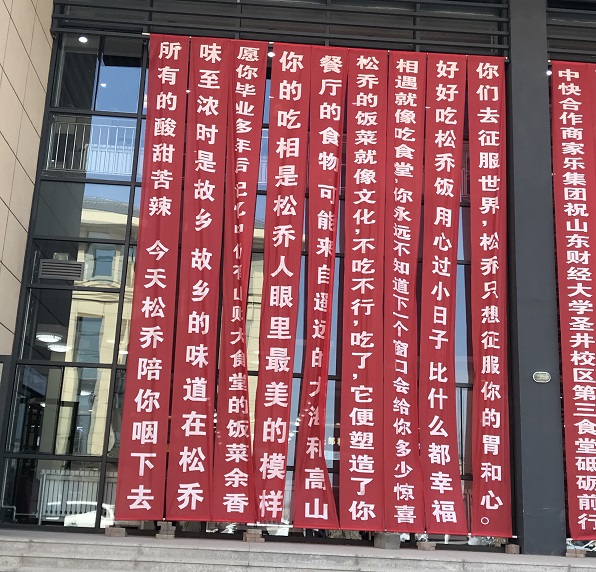 进餐厅之前,第三餐厅打出的条幅,也俘获了大学生的心。