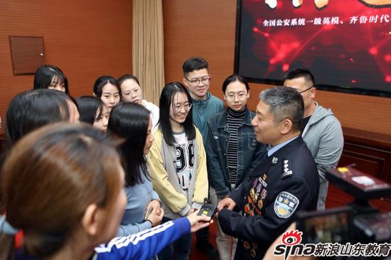 会前,王邵军、赵友春在办公楼与报告团成员进行了亲切座谈。王邵军说,张保国作为全国公安系统的英模和榜样,事迹感人,可学可敬,催人奋进,全校师生员工要按照省委要求,深入学习张保国先进事迹,弘扬主旋律、传播正能量,为全面建成国内一流财经特色名校激发新动力。济南市公安局特警支队作训处排爆中队负责人张保国表示,在纪念五四运动一百年之际,走进山财大校园,与广大青年学生交流,感到很有意义,很激动,很期待。