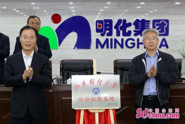 张新对关心支持山财大发展、关心爱护学生成长的孙洪海董事长及明化集团朋友们表示感谢。他说,今年是“明化奖学金”在山财大设立的第3个年头,“明化奖学金”已开展两期资助,先后有100名优秀学生获得总额50万元的资助。获奖的同学们不负众望,自立自强、努力拼搏,取得了一项项可喜的成绩。此次社会实践基地的设立,是校企双方加深合作、共促学生发展的标志性事件,有利于固化校企合作共赢的机制,丰富学生成长、成人、成才的平台,进一步提升多形式帮扶助学的层次。他强调,今年是中华人民共和国成立70周年,也是五四运动100周年。希望同学们要有家国情怀,继承和弘扬五四精神,树立远大理想;要增强学习紧迫感,把对国家和民族的热爱化为读书治学的精神动力;要担当时代责任,把个人发展、个人前途与国家发展、民族振兴的伟大实践结合起来,到社会大课堂中磨练自己。