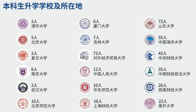 在2018届本科毕业生考取研究生录取学校中,265人升入本校,488人考入"双一流高校",包括北京大学、清华大学、中国人民大学、复旦大学等世界一流大学建设高校。