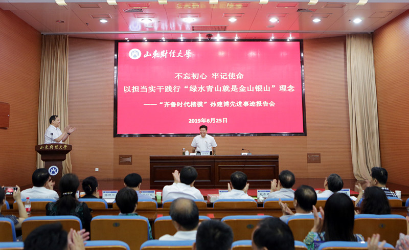 山东财经大学党委副书记车滨表示,孙建博书记为我们上了一堂生动而深刻的“党课”,上了一堂催人奋进的“思政课”,鼓舞人心,催人奋进。全校广大党员干部要以习近平新时代中国特色社会主义思想为指导,树牢“四个意识”、坚定“四个自信”、坚决做到“两个维护”,紧密结合“不忘初心、牢记使命”主题教育,自觉把孙建博同志先进事迹作为生动鲜活的教材,做到学用结合,知行统一。要以孙建博同志为榜样,不断加强党性修养,弘扬优良作风,坚定信心、担当作为,以“全面建成国内一流财经特色名校”的新业绩,迎接中国共产党成立98周年、庆祝中华人民共和国成立70周年。