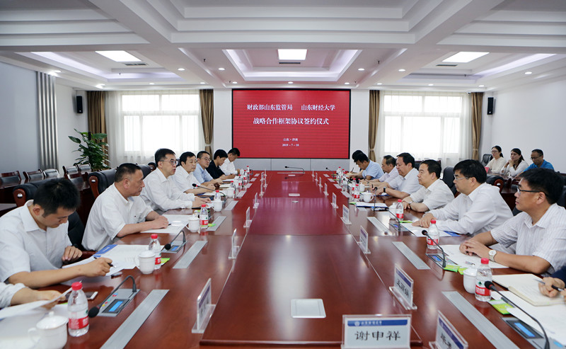 财政部山东监管局和学校相关部门、学院负责人参加签约仪式。