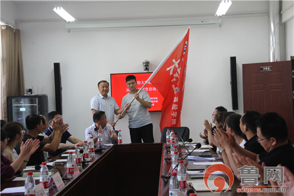 最后,山东财经大学商经学院党委书记李振华为大学生暑期社会实践服务队伍授旗,启动仪式圆满结束。