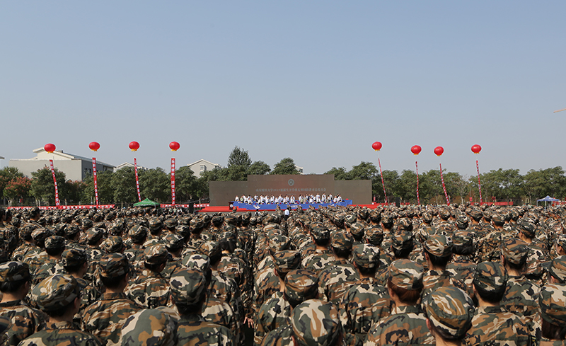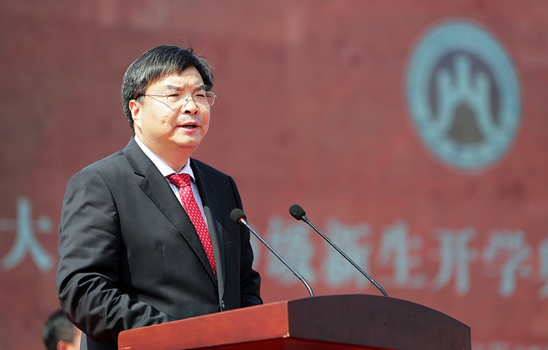 在热烈的掌声中,校长赵忠秀发表了题为《把自己交给梦想》的精彩致辞,他首先对6964名新生加入山财大表示热烈的欢迎,向关心财大、支持财大的家长、校友和社会各界人士表示衷心的感谢,并向辛勤参训执教的部队领导和教官表示诚挚的感谢。