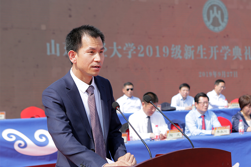 盛世迎国庆,祝福连连;青春伴财大,豪情无限。9月27日,山东财经大学2019级新生开学典礼暨国防教育总结大会在圣井校区田径场隆重举行。校党委书记王邵军,校长赵忠秀,党委副书记车滨、赵友春,副校长綦好东、韩作生、陈晓兰、张书学、张新,中国人民解放军71939部队副参谋长赵小兵,校友代表、2001级市场营销专业校友、上海领路人集团董事长朱上民,教师代表、“泰山学者青年专家”、财政税务学院院长谢申祥等出席典礼。典礼由韩作生主持。