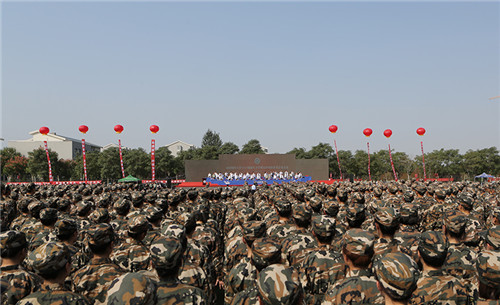 在热烈的掌声中,校长赵忠秀发表了题为《把自己交给梦想》的精彩致辞,他首先对6964名新生加入山财大表示热烈的欢迎,向关心财大、支持财大的家长、校友和社会各界人士表示衷心的感谢,并向辛勤参训执教的部队领导和教官表示诚挚的感谢。