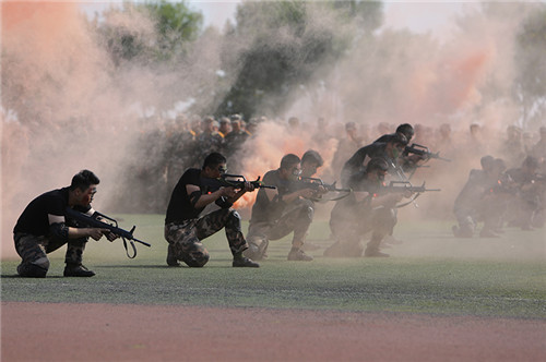 在嘹亮激昂的军乐声中,军训团进行了分列式及表演课目演练。身着军装、迈着矫健步伐的国旗护卫队为先导,挂枪方队、会计学院、工商管理学院等32个方队依次走过主席台前,接受检阅。他们步伐整齐,口号高亢,气宇轩昂,英姿勃发,展示了军训成果和新财大人的青春活力,展现了00后大学生朝气蓬勃、奋发向上的精神风貌。活字印刷方阵、擒敌拳、摔擒、刺杀操、应急棍术等表演课目精彩纷呈、气势恢弘,博得阵阵掌声。480名新生用方阵形状变换展现出“10、9、8、7、6、5、4、3、2、1、0”的数字倒计时,伴随着响亮的口号呈现出“1949”“2019”“70”“我爱你中国”“我爱你山财大”“克明峻德格物致知”等醒目的字样,赢得了阵阵掌声。
