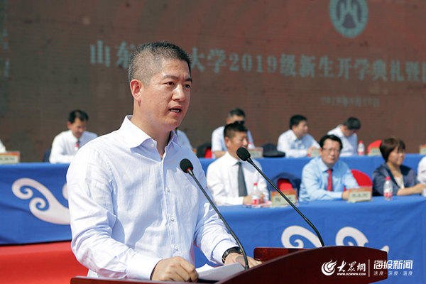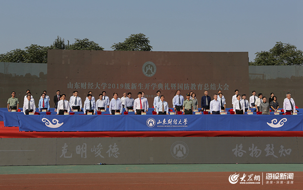 大众网教育 海报新闻讯(通讯员 魏吉宏) 盛世迎国庆,祝福连连;青春伴财大,豪情无限。9月27日,山东财经大学2019级新生开学典礼暨国防教育总结大会在圣井校区田径场隆重举行。校党委书记王邵军,校长赵忠秀,党委副书记车滨、赵友春,副校长綦好东、韩作生、陈晓兰、张书学、张新,中国人民解放军71939部队副参谋长赵小兵,校友代表、2001级市场营销专业校友、上海领路人集团董事长朱上民,教师代表、“泰山学者青年专家”、财政税务学院院长谢申祥等出席典礼。典礼由韩作生主持。