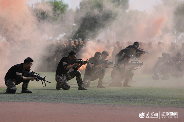 在嘹亮激昂的军乐声中,军训团进行了分列式及表演课目演练。身着军装、迈着矫健步伐的国旗护卫队为先导,挂枪方队、会计学院、工商管理学院等32个方队依次走过主席台前,接受检阅。他们步伐整齐,口号高亢,气宇轩昂,英姿勃发,展示了军训成果和新财大人的青春活力,展现了00后大学生朝气蓬勃、奋发向上的精神风貌。活字印刷方阵、擒敌拳、摔擒、刺杀操、应急棍术等表演课目精彩纷呈、气势恢弘,博得阵阵掌声。480名新生用方阵形状变换展现出“10、9、8、7、6、5、4、3、2、1、0”的数字倒计时,伴随着响亮的口号呈现出“1949”“2019”“70”“我爱你中国”“我爱你山财大”“克明峻德格物致知”等醒目的字样,赢得了阵阵掌声。