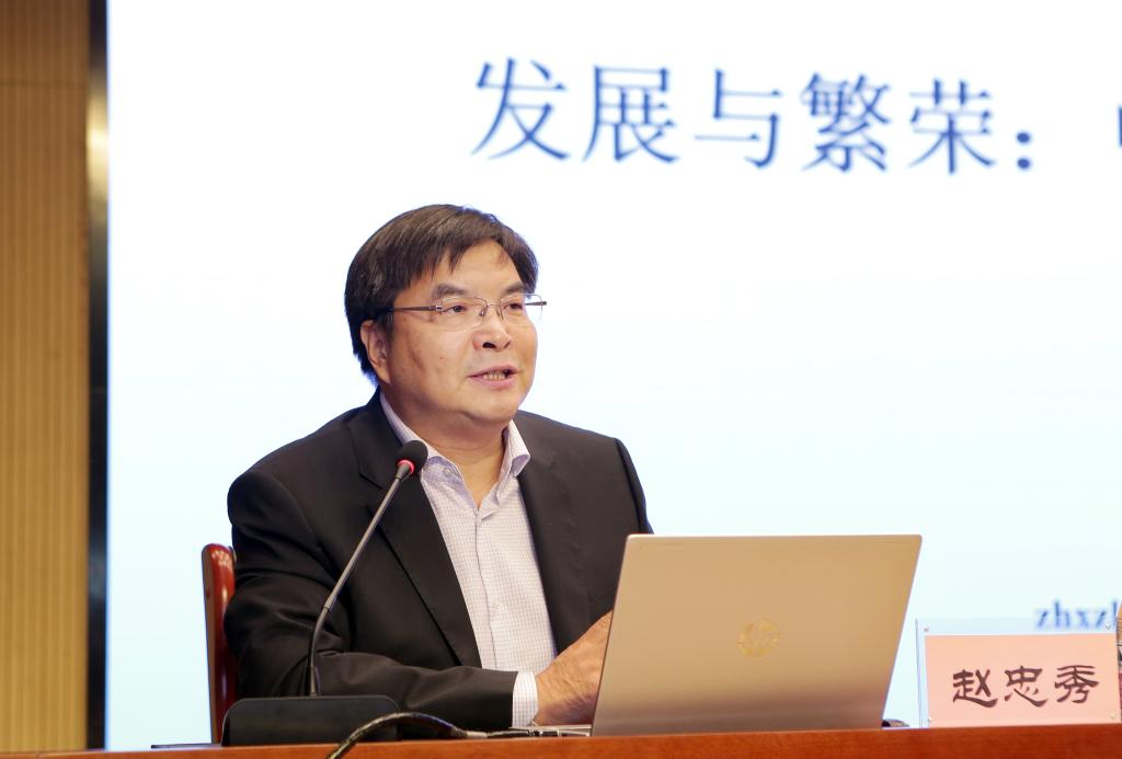 10月10日下午,校长赵忠秀以《发展与繁荣:中国的道路与经验》为题,在圣井校区文化活动中心给该校区2019级新生讲授了一堂思想政治教育课,校党委副书记赵友春主持。