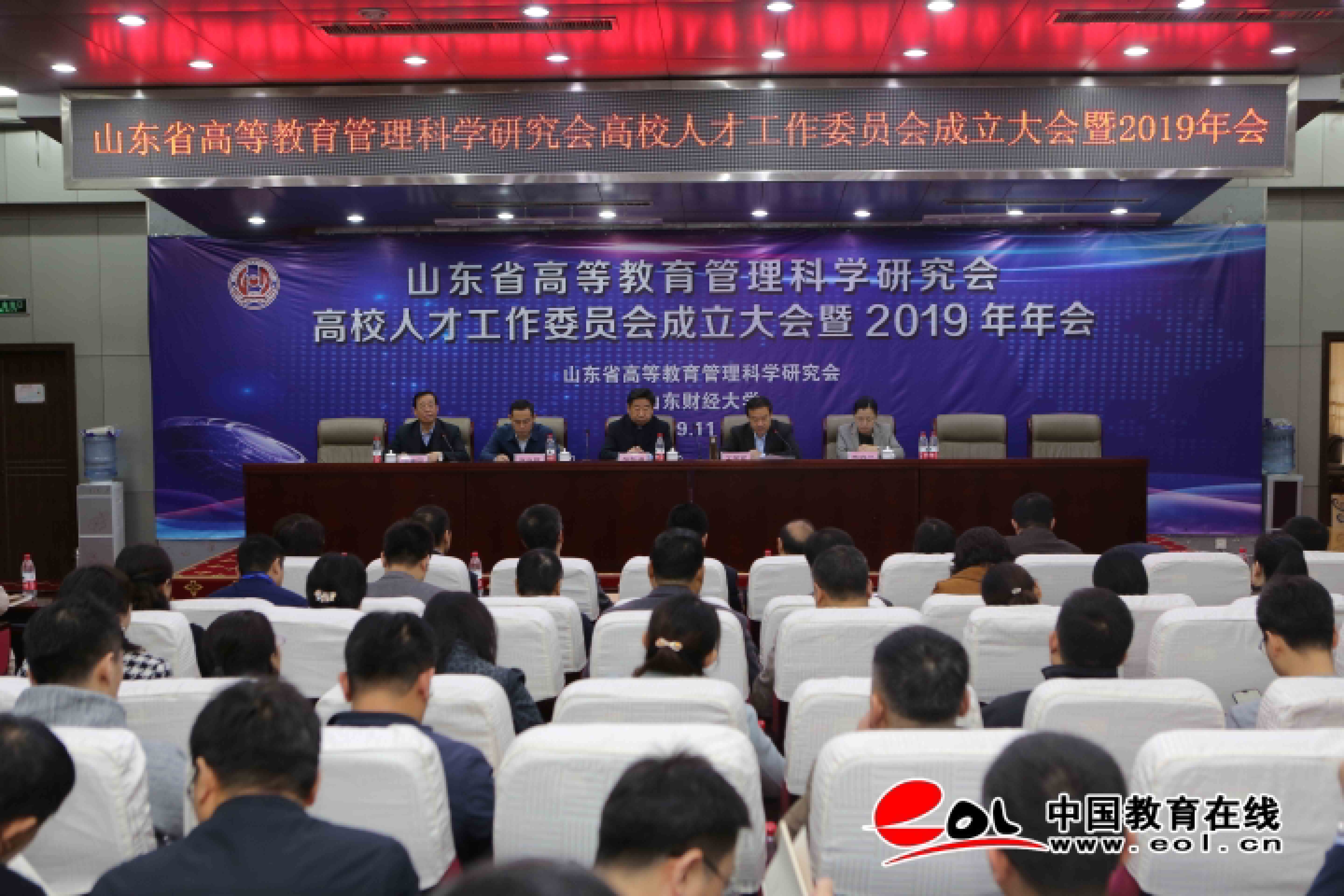 中国教育在线讯2019年11月2日,山东省高等教育管理科学研究会高校人才工作委员会成立大会暨2019年年会在济南天舜大厦召开。山东省高等教育管理科学研究会会长范跃进、山东财经大学党委书记王邵军、山东省委组织部人才工作处处长张兴旺、山东财经大学副校长陈晓兰出席大会并讲话。大会特邀专家孙锐,来自全省各高校的120余位人事人才工作负责人与新闻媒体的朋友参加了大会。会议产生了首任高校人才工作委员会负责人及其秘书处负责人。