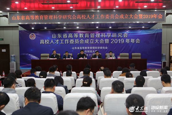 大众网教育·海报新闻讯2019年11月2日,山东省高等教育管理科学研究会高校人才工作委员会成立大会暨2019年年会在济南天舜大厦召开。山东省高等教育管理科学研究会会长范跃进、山东财经大学党委书记王邵军、山东省委组织部人才工作处处长张兴旺、山东财经大学副校长陈晓兰出席大会并讲话。会议产生了首任高校人才工作委员会负责人及其秘书处负责人。