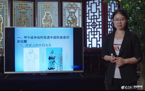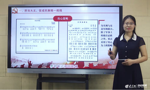 在徐老师的课堂上,必要的文字,辅以契合的图片、视频、趣闻,让同学们全方位的去理解历史、感知历史。用有趣的方式还原历史,使同学们对徐老师的课充满向往,对近代史的学习充满激情。近年来,山东财大马院教师们,以深化思政课教学改革、创新思政课教学模式为工作重点,积极探索出“三循环专题教学模式”改革。创新的教学模式下,课堂展示环节显然格外吸引学生们兴趣。徐莹工作室团队创造出新的小组合作交流的上课方式,鼓励学生间自主合作演绎历史场景,话剧、微电影、辩论会、讲演、唱歌等00后群体喜闻乐见的形式不一而足。身临处境地去感受、去揣测历史人物的心理,显著增强了同学们情感认同,对中国近现代历史有了更深层次的理解。2017级法学院陈修勇同学表示,“《纲要》课是我每周的快乐期待”,大学里遇到徐老师,给我的思政课一种不一样的打开方式。