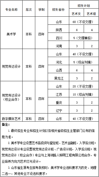 第九条 山东财经大学2020年艺术类专业面向全国10个省份共计划招生220人。具体计划安排如下: